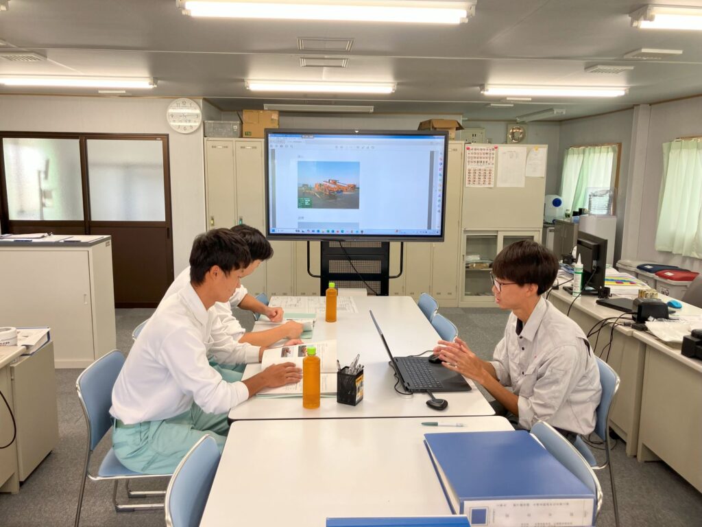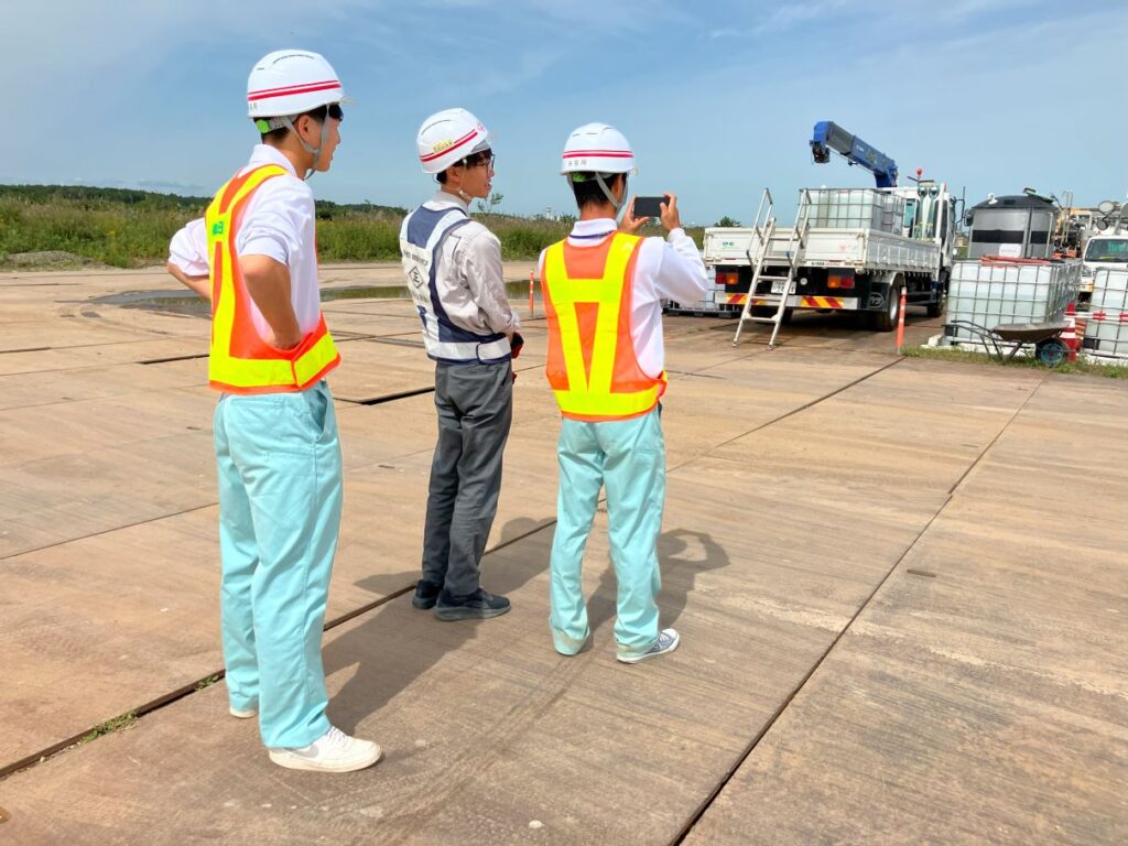9月4日(木) は「新千歳空港B滑走路液状化対策工事」現場事務所において、現場担当者による工事概要の説明を行いました。