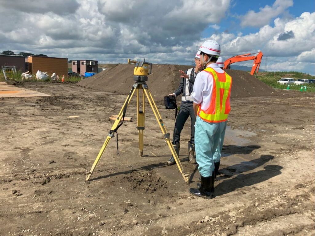 午後からは、若手社員によるレーザースキャナーで測った盛土を3Dデータ化する測量実習を行いました。