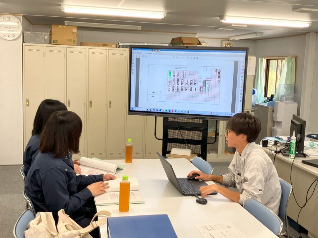 施工現場を見ていただき、現場の雰囲気、安全管理の必要性、施工管理の仕事内容、施工現場における女性技術者の活躍など、インターンシップを通じて学んでいただけたのではないかと思っています。
