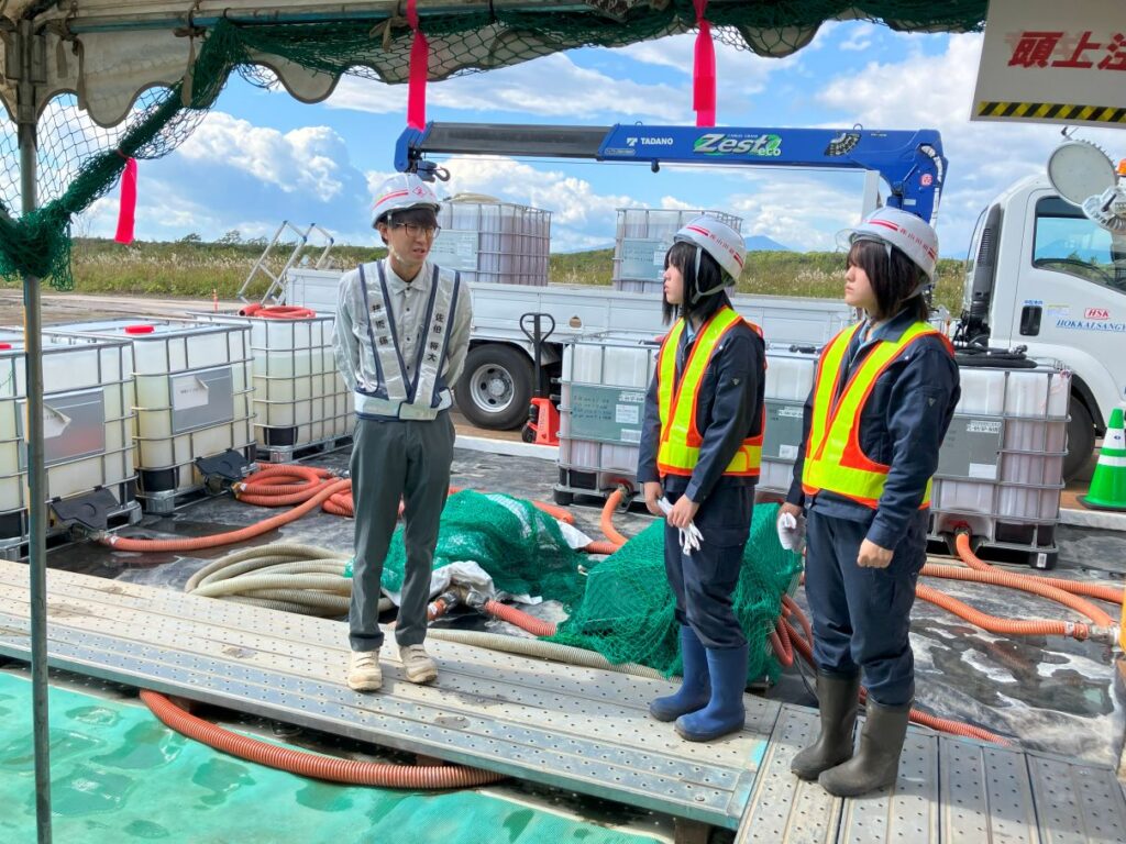 9月26日(金) 山田組本社から「新千歳空港B滑走路液状化対策工事」現場事務所に移動し、午前は現場担当者による工事概要の説明。