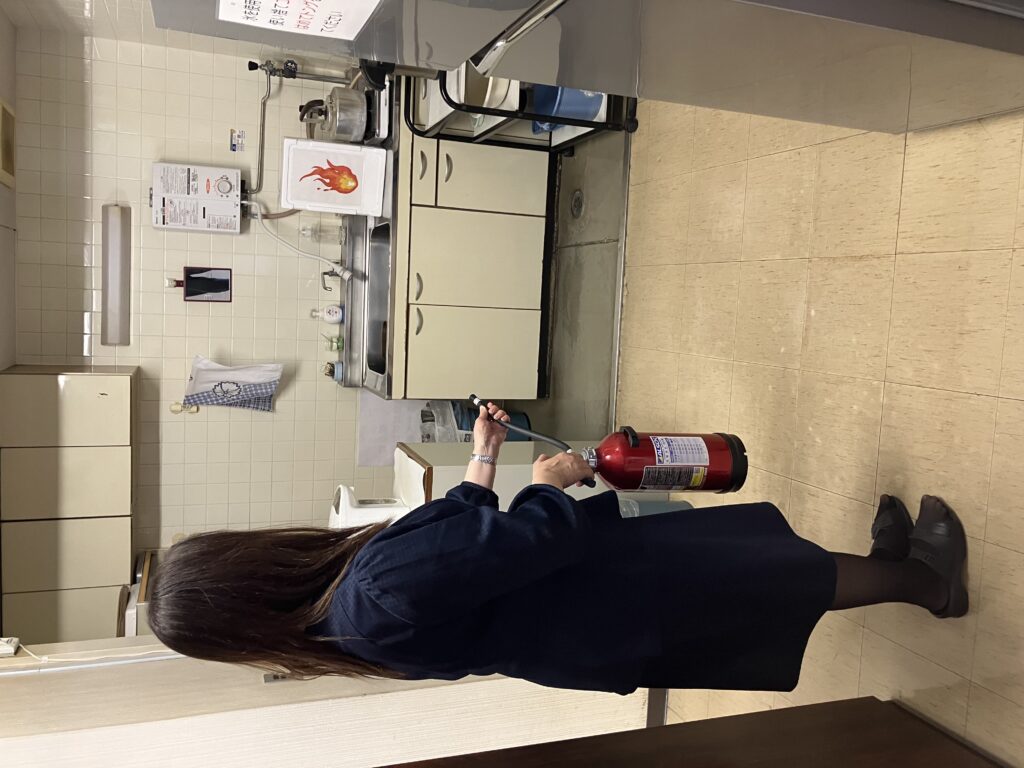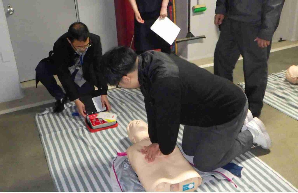 訓練用消火器による消火訓練や一般成人と未就学児童の心肺停止を想定したAED使用による心肺蘇生訓練も実施しました。